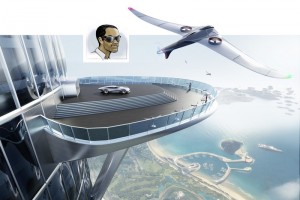 Der “Imaginarium Tower” im “Oasis Plaza” Freizeitzentrum ist mit seiner Aussichtsfläche in etwa 900 Meter Höhe die Attraktion in der Mercedes-Benz Future World. Menschliche Drohnen übertragen von ihren Flügen die visuellen Eindrücke für die Besucher. ;