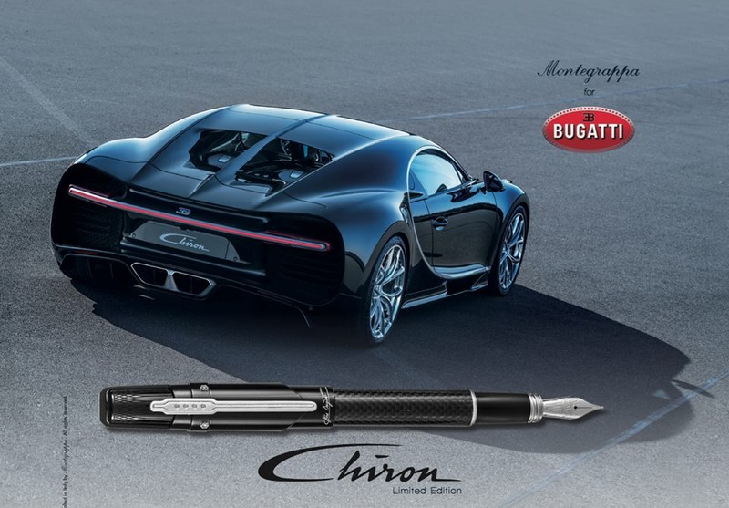 Instead of screwing out the cap from the barrel of the new Bugatti Chiron writing instruments from Montegrappa, the onwer turns the outer end of the cap and the pen barrel is freed. This luxury writing instrument is dedicated to Bugatti’s new CHIRON supercar, the 2.5 million € sports car presented for the first time at the Geneva International Motor Show last March.