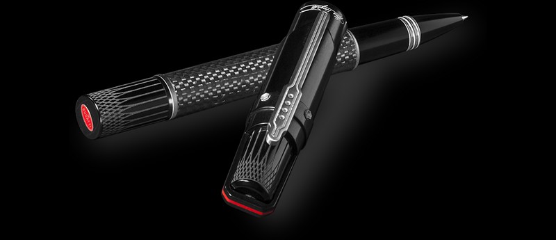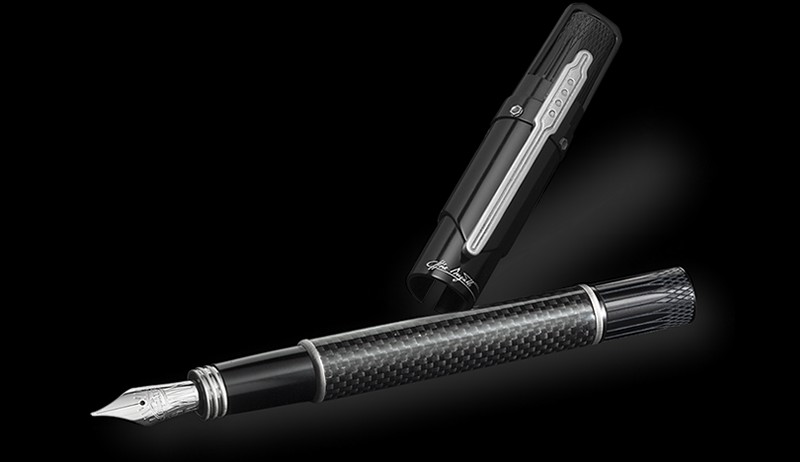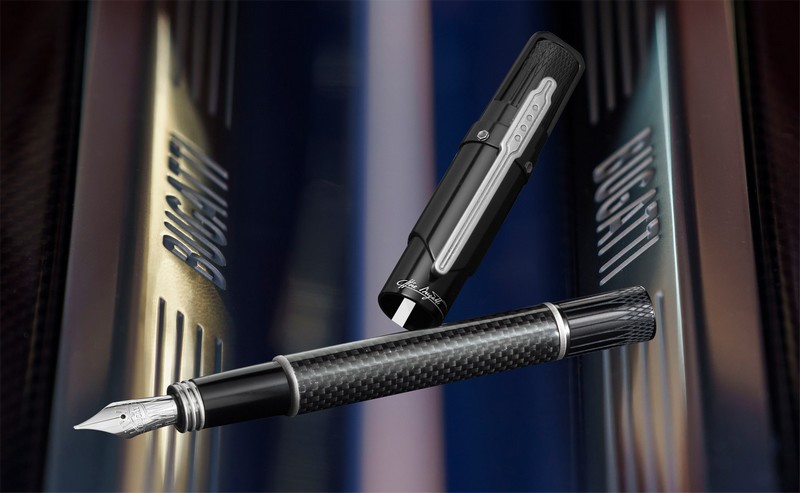 The Chiron writing instruments from the Italian company of luxury products Montegrappa feature carbon fibre barrels, and anodized aluminium cap and barrel ends. These are decorated with dynamic quilting engraving, reminiscent of Bugatti upholstery, while the cap top is enriched with red lacquer line.