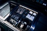 Cocktail tables, which elegantly rotate to mimic the offering of an attendant, open on either side of the hosting suite providing access to two highly contemporary minimalist stools, which are discretely stowed below. Designed by Rolls-Royce and created by Italian furniture maker Promemoria, the slim-line interlocking stools are formed from the same technical fibre found on the exterior of the car. The interior blue Rolls-Royce leather provides the stools’ suitably comfortable seating materials.