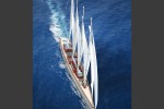 The four masted schooner includes some very unique features, like a large sliding roof over the central guest cockpit to ensure that it can be used all year round irrespective of the weather, an all glass swimming pool bringing light and interest to the gymnasium, with a rising swimming pool platform which, when up, extends the available deck space for receptions and events, as well as becoming an integral part of the helicopter landing platform.
