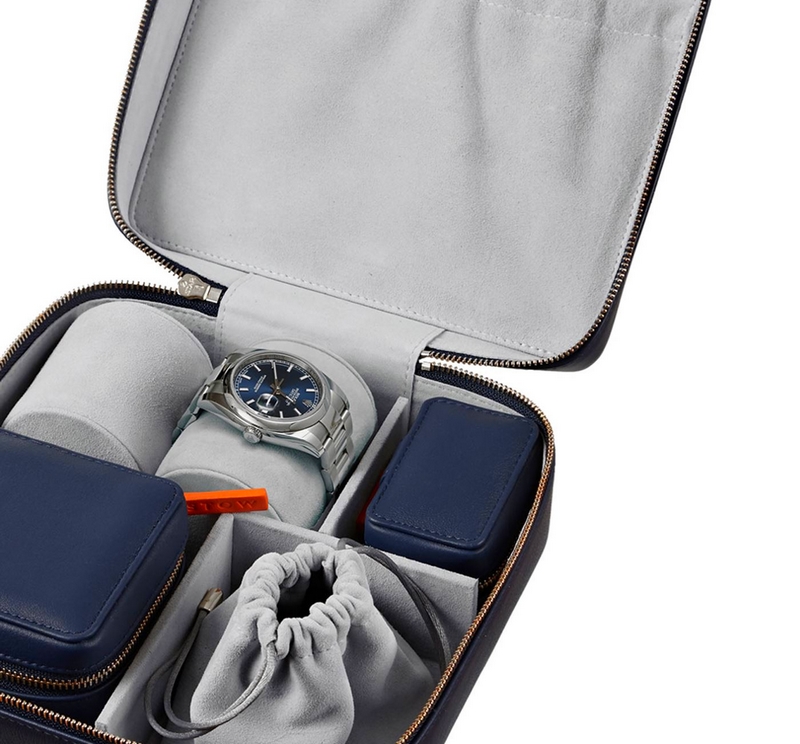 Luxury British brand Ettinger offers an exquisite box crafted from leather for storing small items while on your travels, near or afar. Perfect for pieces such as jewellery or headphones.