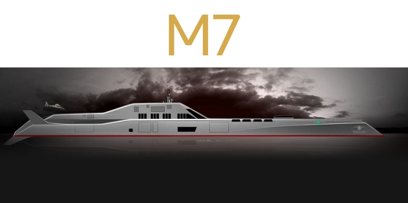The M7 is the world’s largest submersible superyacht design. The styling is inspired by modern Zumwalt-class destroyers. M7 features a 2100 sqm Private owner’s area, a VIP/guest area in total of ~ 1000 sqm, and a VIP/guest accomodation area of ~ 400 sqm. The submersible yacht also is equipped with 6 Dry hangars for surface tender, air-tender, mini-subs & toys, various UUVs & AUVs.