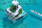 The floating island features a private owner’s penthouse 80 M above sea level, jungle deck with palm trees and vertical gardens, beach deck with entertainment pool & barbecue area, garden deck with al-fresco outdoor dining, spa deck with spa and beauty salons, large pool areas and waterfalls, 2 beach clubs including beach gym, underwater dining saloon, shark-feeding station, outdoor cinema, barbecue and outdoor stage, helideck & massive storage for tender & toys.