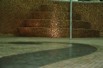 gradient translucent glass tiles transition on the floor of the pool in every direction in order to give the pool extraordinary depth, and to