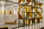Set in a neutral atmosphere, the space will showcase a selection of bespoke pieces underlining the bond between leather and fur workmanships, iconic FENDI materials, and Dimore Studio design approach. This collection comprises two different kinds of lighting, an horizontal one along the walls of the space and a vertical one from above, a bookcase that plays with the same colours of the horizontal light, a grand square table with two chairs – called conversation pieces, and a day bed in shaved mink, on carpet in shades of grey.