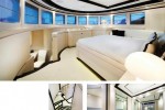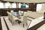 Discover the world’s most prestigious gatherings & exhibitionsThe owner’s cabin is located forward on the main deck, on a raised level to ensure better external view. This area is brightened by plenty of natural light which filters through the windows run 180 degrees around the cabin. The rest of the deck accommodates a lounge open-space fitted with a dining seating ten and a relaxation area. On the upper deck there is another lounge with access to the wheelhouse and communicating with a sunbathing area outside. The sun deck is equipped for relaxing with sofas and sunbathing areas.