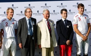 Brigadier John Wright, HRH Prince Charles, Prince of Wales and Jacques-Henri Brive pose with the Teams after The Royal Salute Coronation Cup at Guards Polo Club