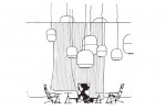 “We have arranged the space into three areas divided by giant felt screens. Each space offers the visitor an environment for relaxation, meeting and working under a canopy of paper lanterns,” say Edward Barber & Jay Osgerby.