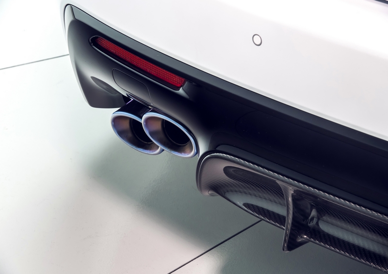 Additional weight was removed by specifying carbon fiber for the roof and hood along with switching to a carbon fiber partition behind the rear seats and a carbon bumper reinforcement. Many of these carbon fiber pieces are made on the same line that supplied the Lexus LFA during its two-year production run. A standard titanium muffler and tail pipes is yet another area where the Track Edition sheds weight. Rarely seen on production cars, the use of titanium not only reduces the overall weight of the individual parts, it gives the Track Edition a polished look along with a unique sound.