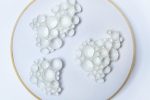 Alexandra Carr’s project represents a series of lamps, made through an amalgamation of 3D printed components and hand sewing to create unique and bespoke clusters of shapes illuminated from behind. The contextual basis of this project has focused on generating a methodology that creates intrinsic notions of preciousness in objects made from PLA.