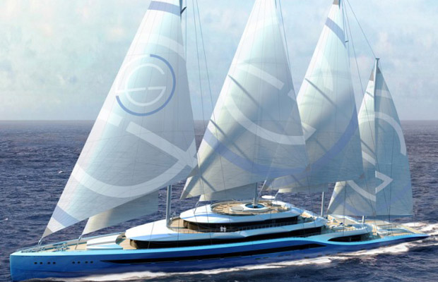Synergy yacht Atlas, a collaboration between H2 Yacht Design and Laurent Giles Superyacht Architects, has been designed to be used with a combination of motor and/or sails, exploiting the obvious fuel saving benefits. The contemporary 5 deck super yacht form is complimented by the sail arrangement, demonstrating the potential in merging superyacht volume with the graceful elegance of a sailing yacht.