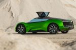 Full electric four-wheel drive Barchetta sports car, powered by two electric motors with a total of 400 Kw on its two axles, space frame aluminium chassis and carbon fibre bodywork.