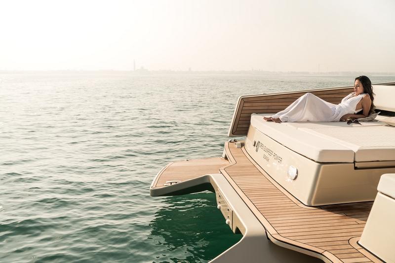 “Depending on the Owner’s wish, this part of the deck can be turned into a comfortable cabin, perfect for overnight trips. Big volumes are also available down in the boat’s hulls to house a bathroom, an additional bedroom or utility room. Premium audio-video systems and individually selected tech gear, custom tailored upholstery and new layout solutions – the options to customize the 40 SunReef Power are illimitable, says the builder sunreef-yachts.