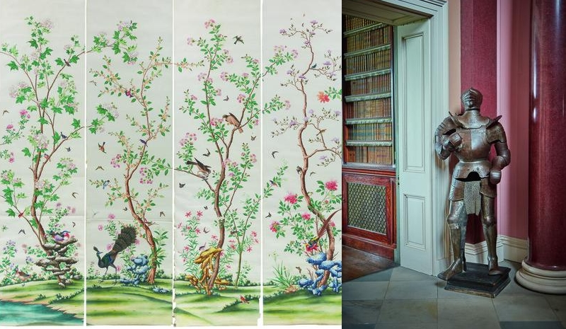 Many of the objects offered in the sale date from when the house was designed as a home for Robert and his two children, Robert and Eliza. It was decorated with ancestral portraits with sculpture and pictures likely to have been acquired on a Grand Tour through Europe and featured an ingenious ground floor gallery with unusual folding walls. In the first quarter of the 19th century, Robert acquired mahogany furniture for his new house from the very best cabinetmakers as well as a suite of sumptuous Chinese Export wallpaper for a Regency scheme that never materialised. The wallpaper’s exquisite colours have remained hidden in the darkness for 200 years.