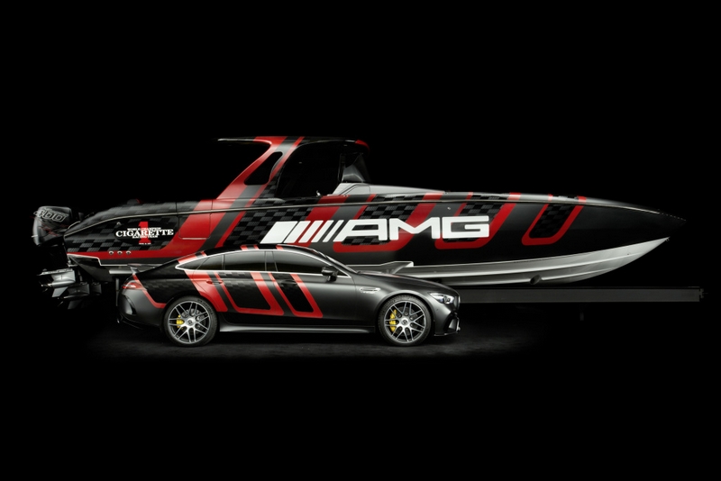 Mercedes-AMG and Cigarette Racing presented the “41’ AMG Carbon Edition” at the Miami International Boat Show. Its systematic lightweight construction and design are inspired by the current Mercedes-AMG GT 63 S 4-door Coupé.