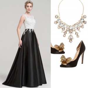 JJsHouse – A sleeveless dress with a beaded lace bodice and a luxurious satin skirt for a perfect combination