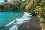 This black sand beach attracts travelers from around the world who want the opportunity to take a photo on the insanely beautiful black sand – or to spend the day relaxing in it. Surrounded by a lush, green forest, Lafayette Beach provides beautiful scenery for tourists participating in a variety of activities, from snorkeling to paragliding.