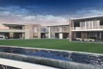 Set on a private knoll, the grounds include four swimming pools, a tennis court and a vast lawn planned to utilize synthetic material rather than real turf, in an effort to be mindful of the current state of the California environment.