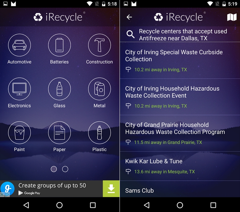 Recycling is a great way to reduce waste and help the planet, but finding the proper centers for the different categories of recyclable materials can be a challenge. The iRecycle app finds those centers for you and sorts them by what kinds of materials you can take to them. The app also lets you know when the centers are open and any other important information you need to make your recycling efforts run smoothly.
