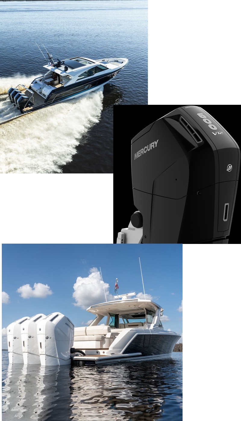 The world’s first V12 outboard, the 600hp Verado engine features a naturally aspirated, large‑displacement, quad‑cam powerhead that generates impressive torque to get heavy boats out of the hole and on plane quickly, and to accelerate up to rated speed rapidly.