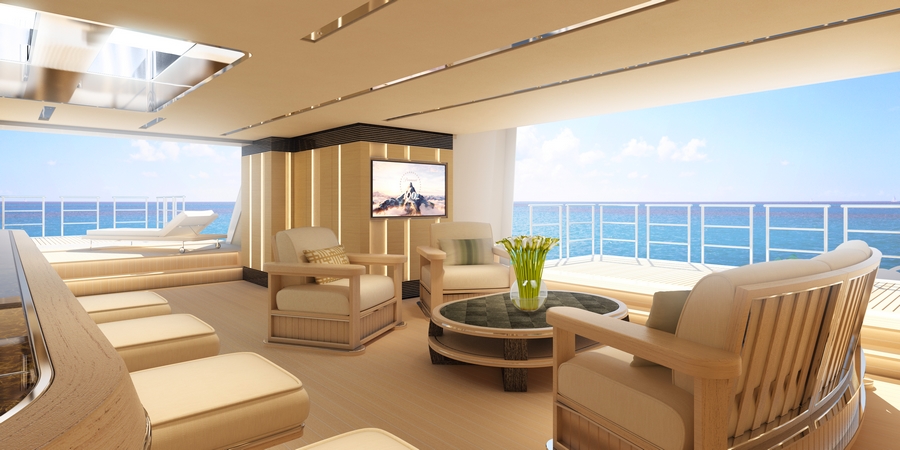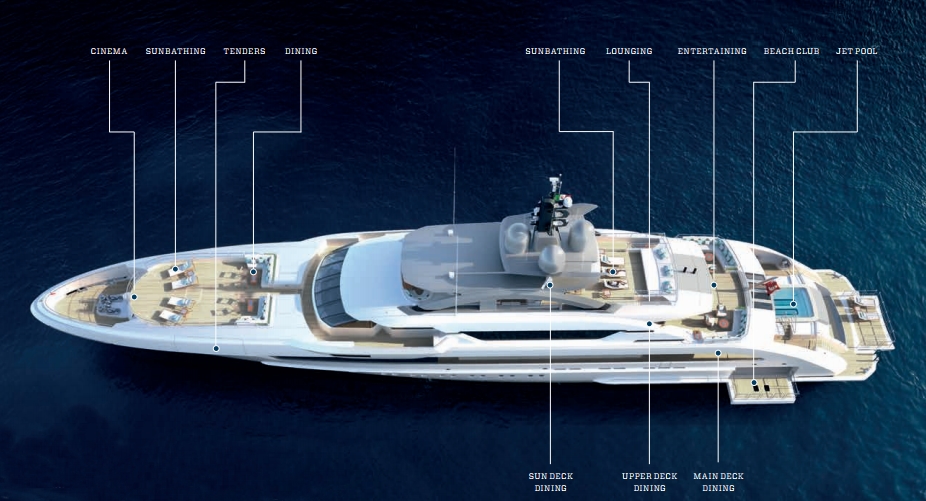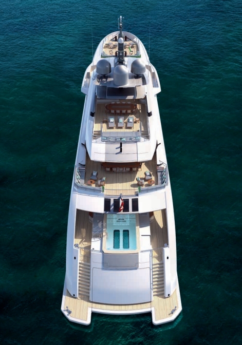 Kometa superyacht has an incredible 357 square metres of deck space. From sun deck to beach club there are twelve alternatives for guests to choose from including sunbathing, dining, spa space, Jacuzzis, jet-pool or just lounging around in the sun or shade. Already past the initial stages of construction, Kometa will be delivered in Spring 2016, announced Heesen Yachts. The foredeck can be used as a touch-and-go helipad or as a chic, shaded lounging space for sunbathing or informal dining. At night it transforms into an outdoor cinema or stage with built–in speakers that can also be used for a music concert.
