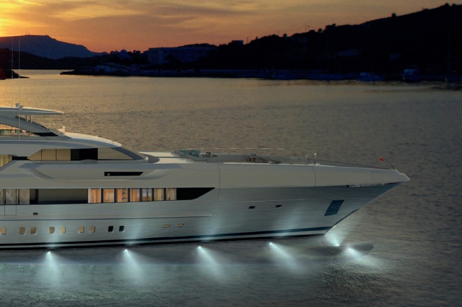 What makes Kometa different from every other yacht in the world is a fusion of three totally different concepts. For a 70 metre yacht to reach almost 30 knots but also be able to cruise economically (and comfortably) for over 4.000 nautical miles would mean using the technologies of both displacement and semi-displacement hulls. These include the revolutionary fast displacement hull, a ground breaking fixed pitch propeller shape unlike anything yet fitted to a yacht and a Rolls Royce central booster jet, all coordinated by Heesen engineers and Dutch hydrodynamic specialists Van Oossanen.