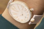 After several black and white versions, Breguet Reine de Naples ladies watch now comes in a pink shade. This new luxurious timepiece boasts a feminine and refined visual harmony with its rose gold case, its bezel and flange set with 117 diamonds and its crown, which also features a diamond. The dial is light pink and is made of “Grand feu” enamel in line with Breguet’s watchmaking tradition. The off-centre hour circle features a pear-shaped diamond at 6 o’clock, adding elegance to the timepiece. As for the secret signature, it is subtly outlined between the centre of the dial and 3 o’clock.