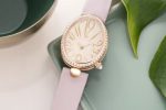 Finally, the buckle of the pale pink calfskin strap is set with 28 diamonds.