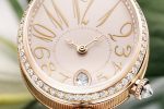 Breguet Reine de Naples 8918 timepieces is available in white gold, in rose gold or in yellow gold with silvered gold dial, hand-engraved on a rose engine and partly in white natural mother-of-pearl. The watch is available in rose gold with dial in champagne-coloured Tahitian natural mother-of-pearl and partly in white natural mother-of-pearl, hand-engraved on a rose engine.
