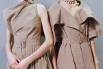 Architectural elegance took center stage in this collection, with coats boasting imposing collars, wide skirts revealing meticulously crafted cut-outs, layers upon layers of fabric that danced gracefully around the wearer, and a contemporary twist on trench coat-inspired silhouettes. Black velvet dresses exuded an air of timeless sophistication, accentuating the notion of flowing motion, while regal capes elongated the wearer’s silhouette, including a sumptuous feather-adorned version gracefully draping over an intricately embroidered double organza dress.