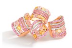 The Brumani’s $27,546 earrings (rose gold with round diamonds, pink quartz and pink tourmaline ) are designed for individual ears for a perfect proportion and symmetry. Confetti & Streamers collection include also a $13,552 bracelet, rings, necklaces, all featuring 18k rose gold with round diamonds, rose quartz, and yellow and pink sapphires.