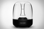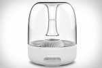 The Aura speaker by Harman Kardon packs a punch much larger than its modest footprint might suggest. Its transparent enclosure lets you see inside to observe the subwoofer and its custom-built metal housing and illuminating LED.