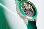 Dior Grand Soir Jardin de Nuit quartz-movement watches are conjuring up the mysterious beauty of an enchanted garden after dark. Christian Dior’s passion for plants is conveyed in the way the delicate cascades and and sproutings of foliage and flowers are crafted in a mixture of tiny precious stones, golds and platinum, with each dial surrounded by a hardstone bezel and held in a case of sparkling snow-set diamonds.