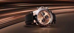 The Cosmograph Daytona in 18ct Everose gold sporting a pink dial with black counters