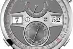 The special shape of the large time bridge that prominently frames the hour and minute numeral apertures of all ZEITWERK timepieces inhibits the integration of the outsize date that is characteristic for Lange. For this reason, a completely new design approach was needed to integrate a date display. The result is a glass ring date that circles the dial of the new ZEITWERK DATE.