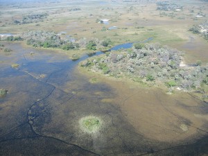 the Okavango Delta, with free canals and lakes, swamps and islands