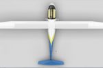 The airplane, showing much resemblance with a glider, is coated in the team’s blue and white colours, with the