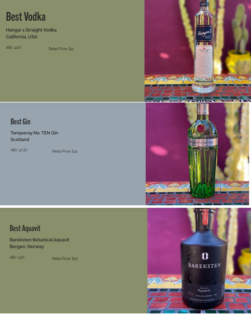 - BEST AQUAVIT: Bareksten Botanical Aquavit; Origin: Bergen, Norway; ABV 43% Price: $50;