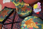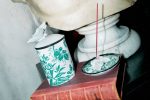 Scented candles in porcelain jars, lacquered chairs upholstered with embroidered seats, and double-sided screens crafted in wood and velvet.
