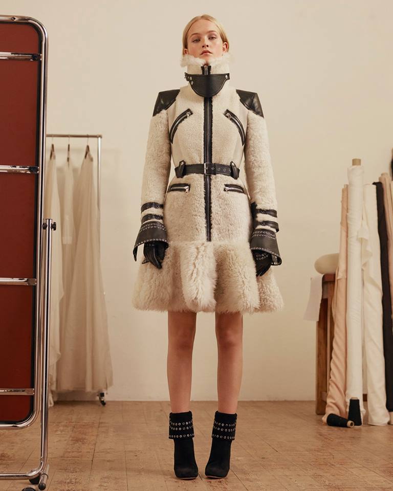 The Pre Autumn/Winter 2017 collection draws inspiration from the sculptural forms of British artists such as Barbara Hepworth. Signature knit dresses are pierced with curves and panels of sheer silk, juxtaposed with chenille and tweed. Birdseye suits are cut asymmetrically with a spherical drape on one side.