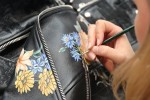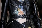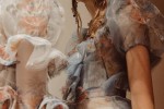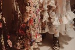 In the Alexander McQueen’s atelier the hand-painting floral motifs were applied onto a leather frock coat, while 3-D hand-dyed Shetland wild flowers were hand-embroidered on 3D floral dresses. Each flower was hand- stitched individually on tulle. Island floral bouquets were also printed on organza ruffles.