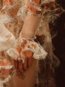 Island floral bouquets printed on organza ruffles for Alexander McQueen SS17