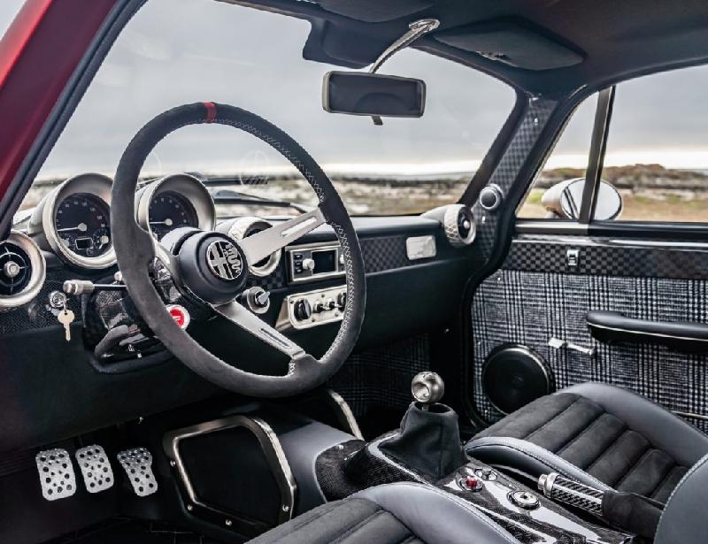 Totem Automobili takes a revolutionary approach to crafting their Gran Turismo creations. Each original Alfa Giulia GT Junior 1300/1600 from 1970 to 1975 undergoes a complete disassembly and stripping, leaving only the bulkhead intact. This classic chassis is then coupled with a Totem carbon fiber monocoque, expertly marrying originality with modern engineering. The result is an incredibly stiff shell that adheres to the latest EU and US safety standards.
