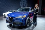 In addition to the two Nero Edizione Giulia and Stelvio vehicles on the stand, other Alfa Romeo models on display in New York City included: 2018 Alfa Romeo Stelvio Quadrifoglio in Rosso Competizione Tri-coat, 2018 Alfa Romeo Giulia Quadrifoglio in Misano Blue Metallic, 2018 Alfa Romeo 4C Spider in Madreperla White Tri-Coat, 2018 Alfa Romeo Stelvio Ti Sport in Vesuvio Gray Metallic, 2018 Alfa Romeo Giulia Ti Lusso in Vulcano Black Metallic.