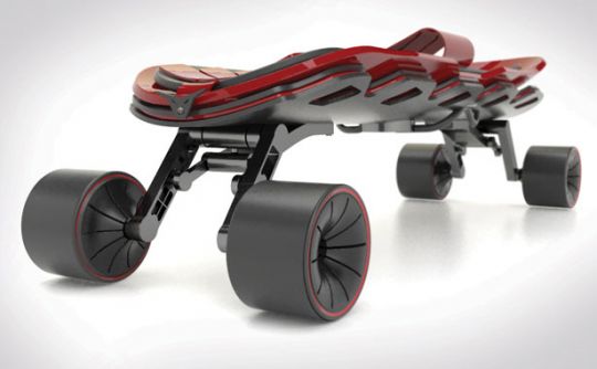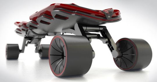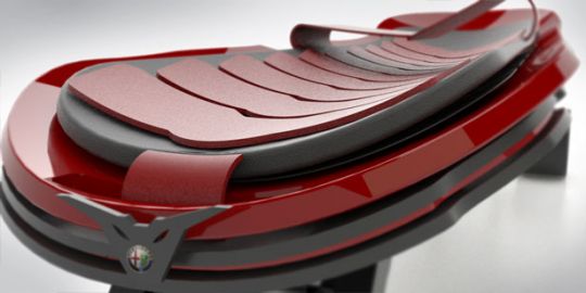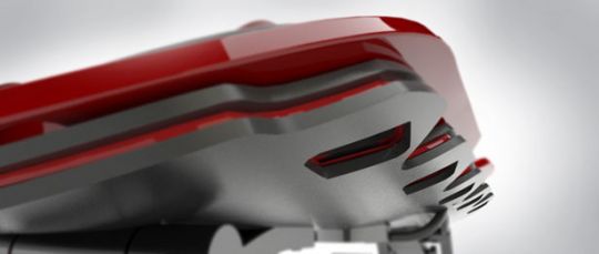 After a thorough research on various extreme sports, Andrea Mangano chose to design a board dedicated for speed-down races. Raptor has been designed with 3 layers structure to increase its strength and balance. The mechanical front and rear arms allow its user to bend without losing balance. This board is painted in red and black colors which are the typical characters of Alfa Romeo brand.