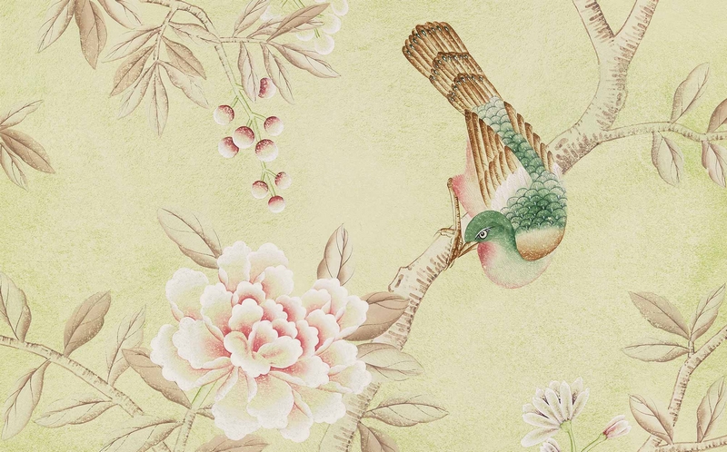 The ‘bird and flower’ design layouts are available in varying densities, ranging from intensely detailed, luxuriant gardens in full bloom to pared-down, elegant and