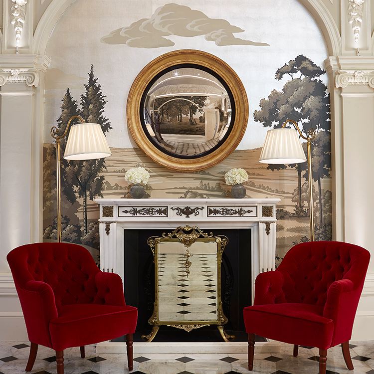 Fromental’s latest creation is a statement scenic wallcovering for the Front Hall of The Goring as part of the hotel’s comprehensive renovation. The scenic portrays an Arcadian landscape enlivened with an anthropomorphised menagerie of wild and exotic beasts, some of which represent members of the Goring family past and present.