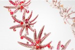 Unconventional shapes of coral, with a radiant consistency, are wrapped in a delicate garland. Tiny, feminine flowers meet the natural strength of precious coral. Refined details convey the most glamorous effect.