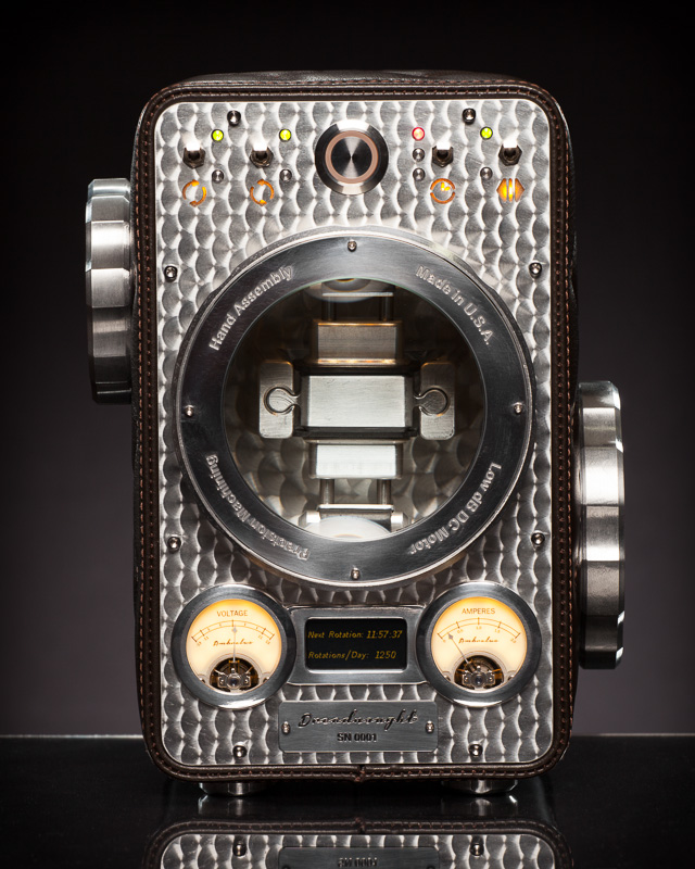 Ambrelus Dreadnought is fully programmable, featuring CNC-machined aluminum parts, custom- made analog meters, serialized name plate, quiet low-gauss electronics and motors. Add to this a magnified viewing port, fully adjustable illumination. The Dreadnought is available in three standard finishes with owner-specific options available upon request.